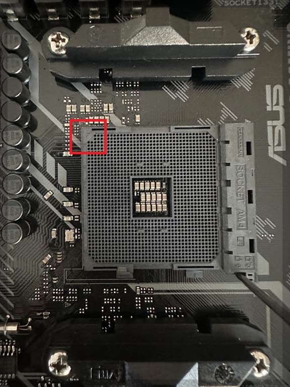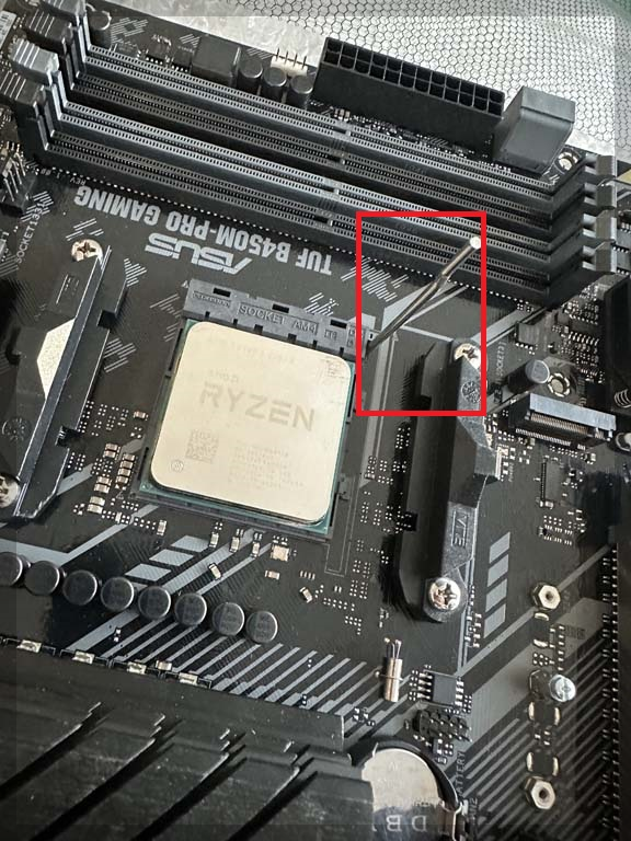 CPU와 메인보드 최종 고정을 할려면 오른쪽 고정핀이 있습니다.