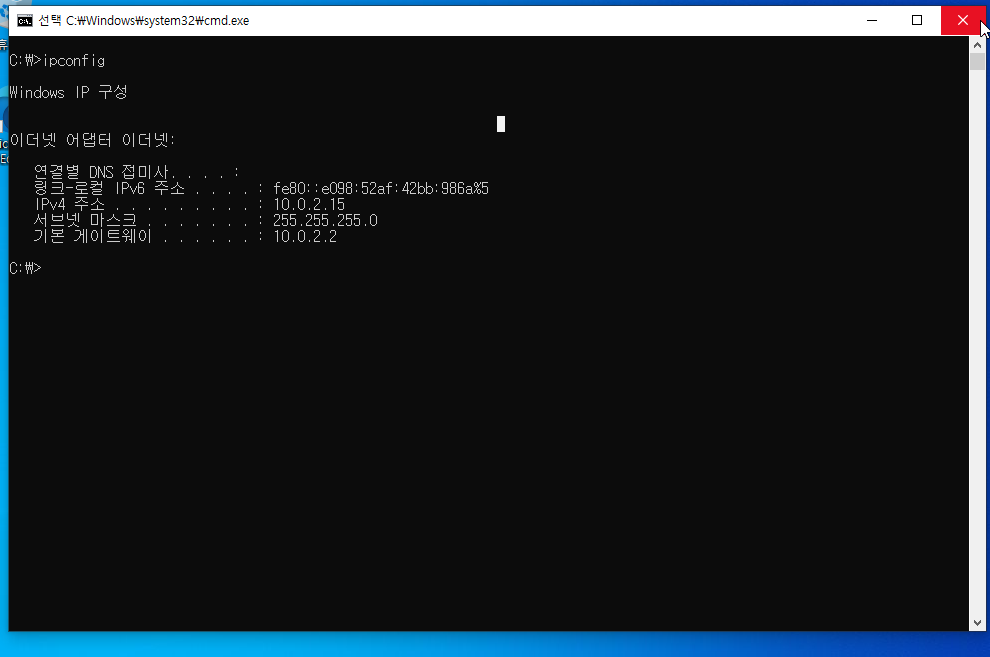 cmd창을 열어서 간단하게 컴퓨터 IP 주소(네트워크) 확인시 사용하는