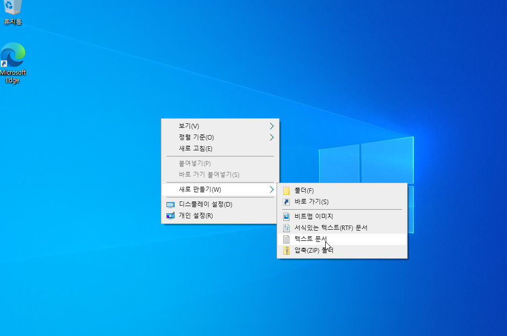 가장 쉬운방법이 바탕화면에서 마우스 오른쪽 누르고 새로만들기 → 텍스트 문서 선택