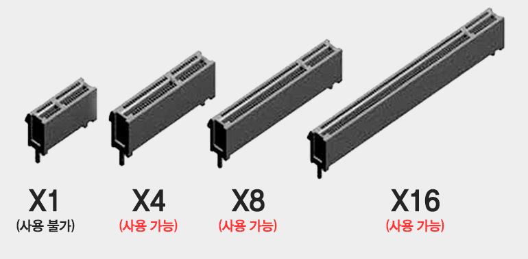 보통 외장그래픽이면 x16이라고 생각하시면 되고 그것보다 조금 짧다면 x8 더 짧으면 x4라고 생각하시면 쉽습니다.