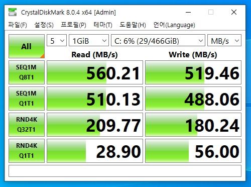 순차읽기 560MB/s 순차쓰기 510MB/s