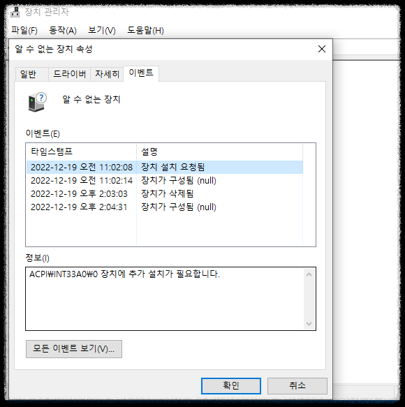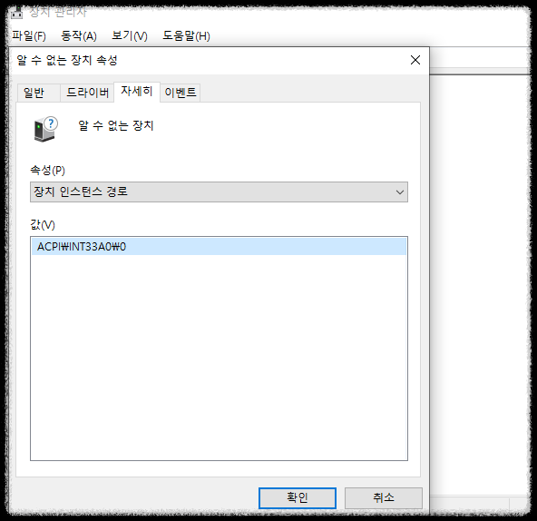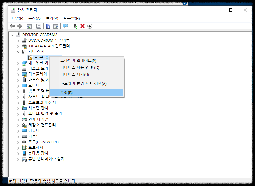 그럼 알수없는 장치 속성를 한번 체크해볼 필요가 있죠