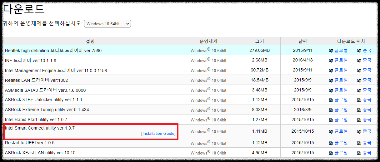 메인보드사에서 조금 쉽게 링크를 걸어주면 금방 찾을텐데 삽질을 엄청나게 시키고 아까 설치 가이드에도 Intel Smart Connect Technology 2.0