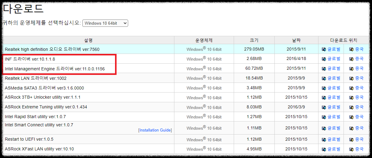 INF 와 Intel Management Engine 드라이버