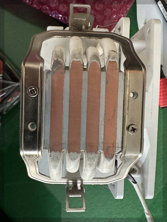 CPU쿨러 하단부분 CPU와 직접적으로 맞닿는 부분이라고 할수 있겠습니다. (저기에 서멀그리스를 발라야됩니다.)