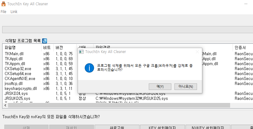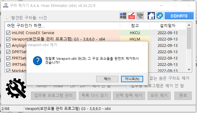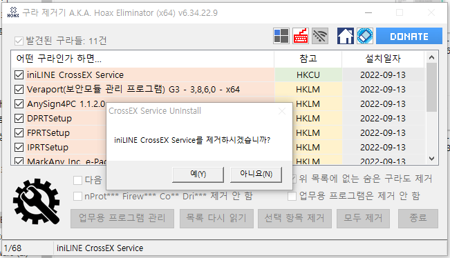 그런 게 아니면 제거하는 게 좋습니다! ※ 작업 중인 인터넷창등은 꼭 저장하세요!!