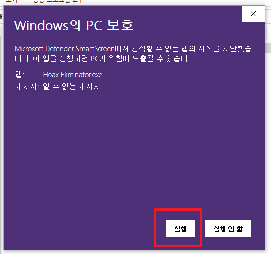 Hoax Eliminator.exe라는 폴더를 더블 클릭하면