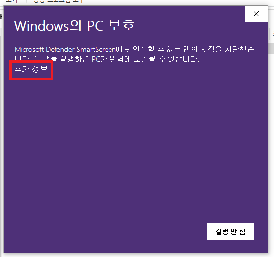 위와 같이 Microsoft Defender SmartScreen은 마이크로소프트 즉 윈도우에서