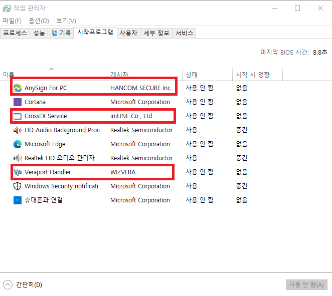 물론 업무상 은행이나 정부24등 자주 가는 보안 프로그램은 따로 관리하시면 됩니다!!!