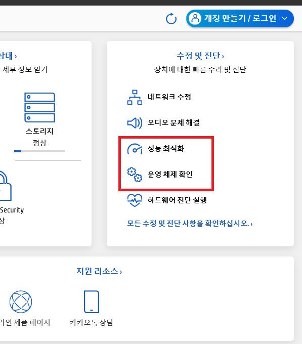 마찬가지 HP Support Assistant 에서 제공되는