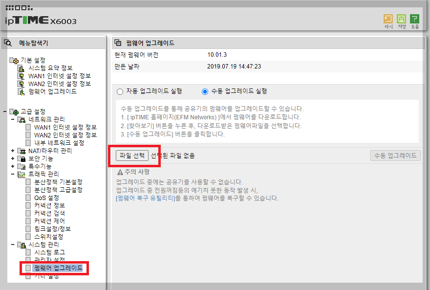 다른 하나의 x6003은 펌웨어 정상적으로 수동으로 업그레이드 해서 현재까지 문제 없이 사용하고 있습니다.