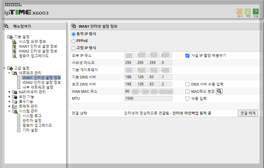 ipTIME x6003 사용기 장애발생