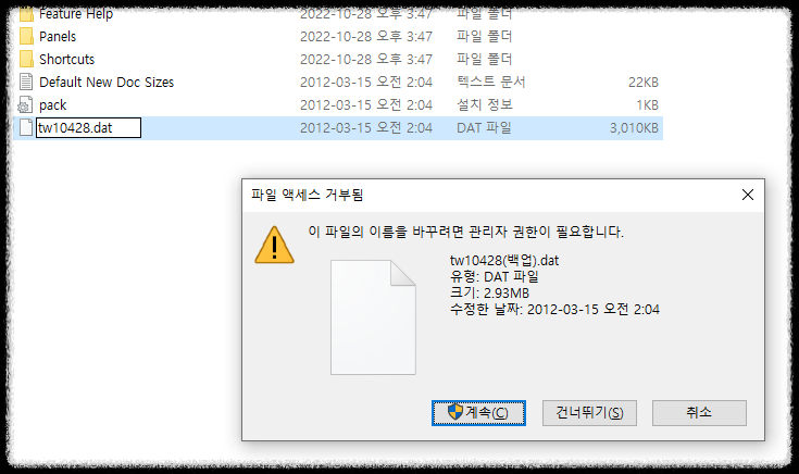 이름 변경시 파일 액세스 관련되서 물어봅니다.