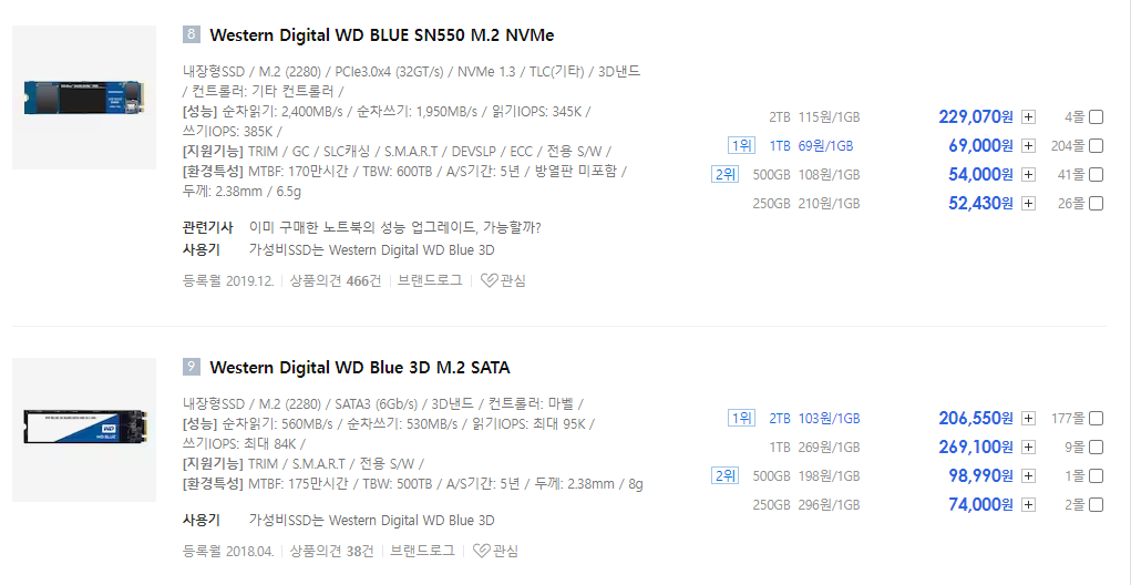 다나와검색에서도 M.2 (2280) 체크하면 저렇게 두개가 비교 되기 마련인데..