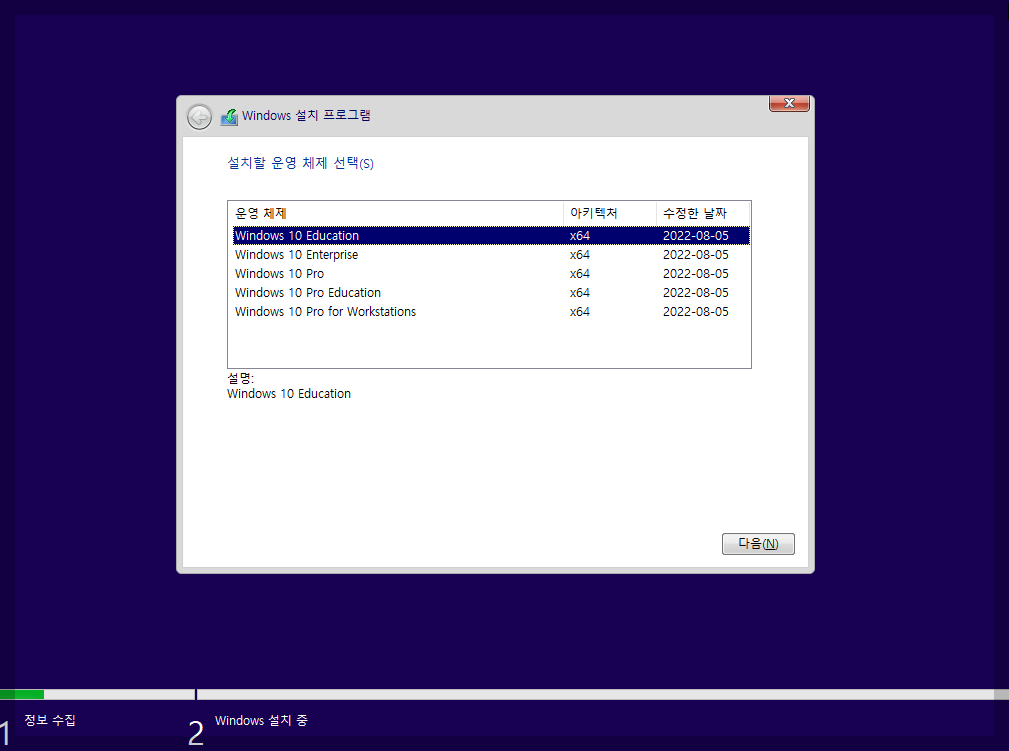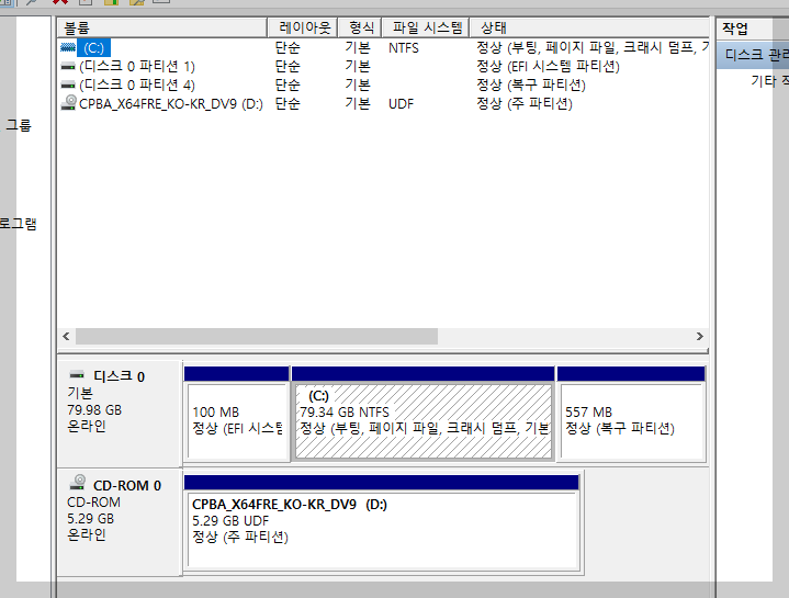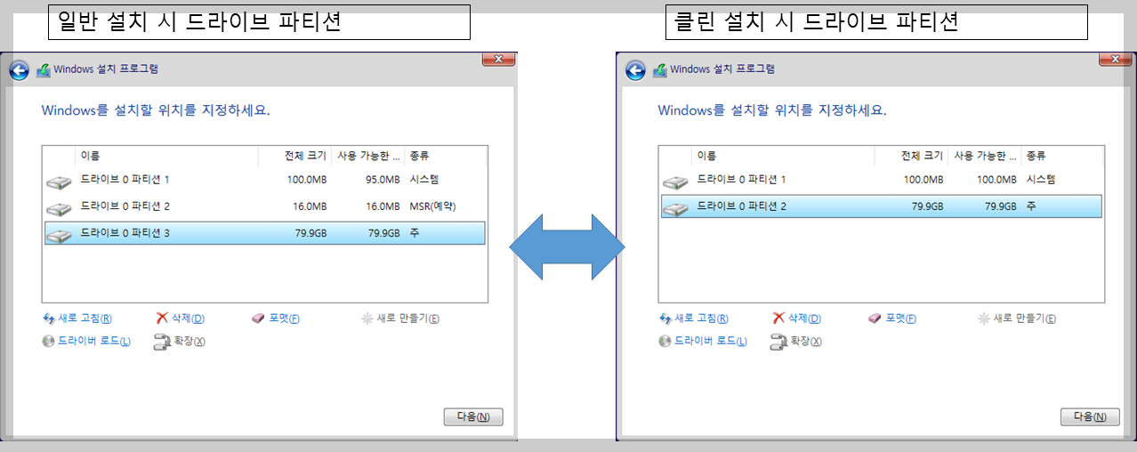 그냥 윈도우(마이크로소프트)에서 기본적으로 설치와 방금 명령어를 통해 수동으로 클린설치한 파티션